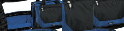 - 600 denier polyester with polyester dobby contrast Side and end pockets for easy packing Adjustable