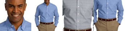 For those who prefer a slimmer fit. A beautiful check pattern elevates this shirt, while an enhanced non-iron finish keeps it looking polished. Woven with 40-singles and 80-doubles yarn, this two-ply 100% cotton style has bias-cut details inside collar stand and under cuffs. Center back pleat. Single-needle tailoring. Open collar with collar stays. Red House engraved buttons and embroidery on the right sleeve placket. Two-button notched cuffs.