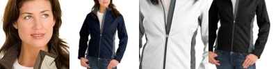 Our Two-Tone Soft Shell Jacket takes on the wet, windy world with function and style. Made with polyester interlock bonded to polyester fleece, this soft shell breathes to keep you comfortable and has amazing stretch to keep up with your active lifestyle. Rated for protection against water, it's ready for whatever adventure your day holds.
