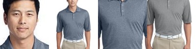 Stay comfortable before, during and after the round in this sophisticated style. Dri-FIT moisture management technology helps keep you dry and focused. Contrast stitch details on the seams and collar. Other features include a self-fabric collar, three-button placket and open hem sleeves. A contrast heat transfer Swoosh design trademark is on the left sleeve. Made of 4-ounce, 100% polyester heathered jersey Dri-FIT fabric.